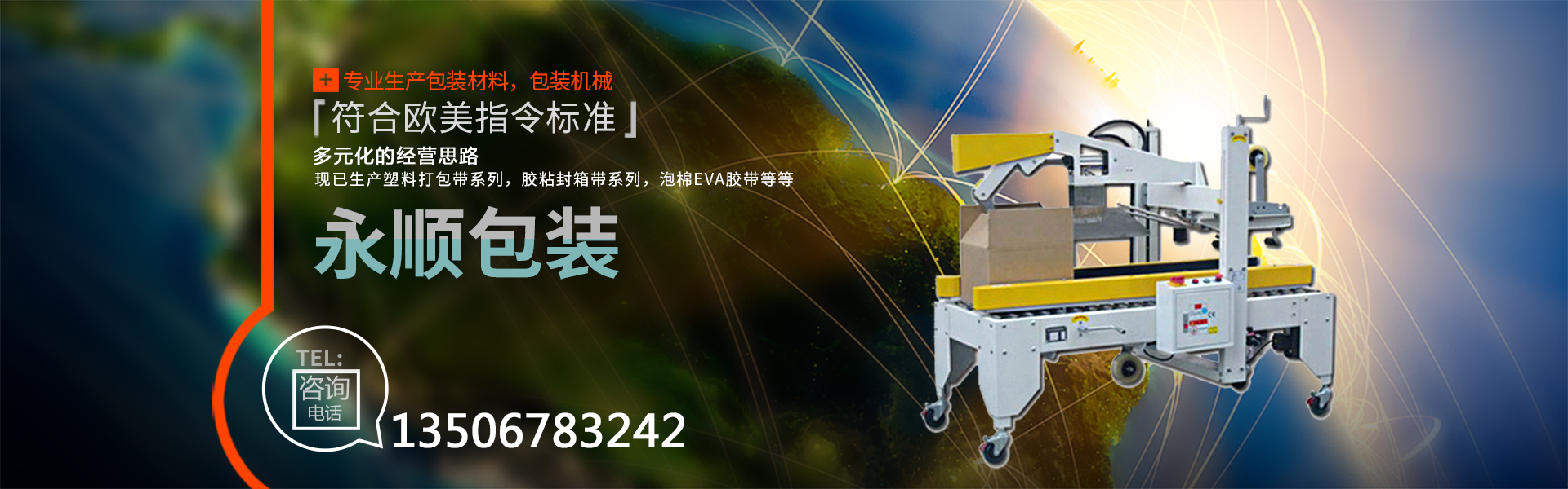 慈溪市永順包裝材料有限公司是一家專業生產包裝材料,包裝機械的廠家。公司自創(chuàng)建以來,經過不斷的努力,憑借優(yōu)異的產品質量,良好的售后服務,在市場上取得了突飛猛進的業績,獲得了客戶的廣泛認可與贊譽。公司本著多元化的經營思路,現已生產塑料打包帶系列,膠粘封箱帶系列,泡棉EVA膠帶,鋁箔膠帶、美紋膠帶、牛皮膠帶、文具膠帶。全自動打包機,收縮包裝機,移印機,真空包裝機,自動封口機,纏繞膜裹包機,等各種包裝機械(無人化全自動包裝機械)。其中塑料打包帶、粘膠帶已全面通過SGS認證,符合歐美指令標準。